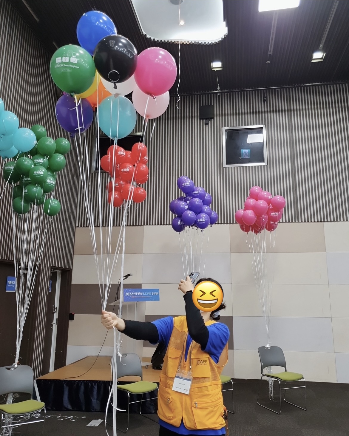 스태프 단체 사진을 찍으러 대회장에 들어갔을 때
